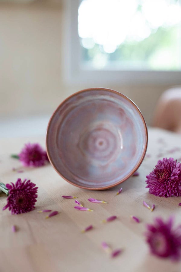 Bubble Bowl with pink glaze and handpainted hearts.
